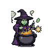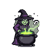 Spritesheet Breakdown & Animation Frames for Mischievous Witch Brews Glowing Green Potion