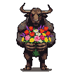 Spritesheet Breakdown & Animation Frames for Gentle Minotaur Offers Colorful Flower Bouquet