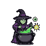 Spritesheet Breakdown & Animation Frames for Mischievous Witch Brews Glowing Green Potion